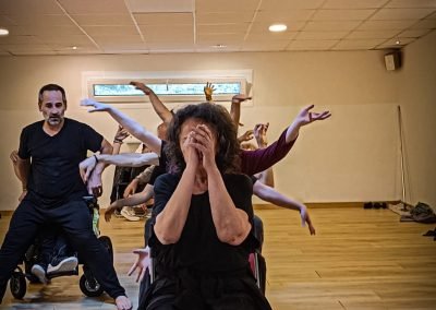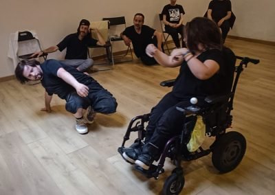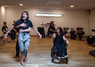 16:30 h recollida de usuarios da AIND 16:00 h Visita e Almacenamento Fundación Luis Seoane, contido. Lema da exposición fotográfica. Desenvolvemento do obradoiro de creación arte-terapéutica presencial e movemento inclusivo ata as 20:00 h. 1.-Traballo de recoñecemento do corpo no espazo, revisión de articulacións e músculos, quecemento das extremidades para posteriormente facilitar o movemento na psicomotricidade fina dos traballos artísticos posteriores. 2.-Exercicios de respiración e relaxación respiratoria empregando o propio espazo do museo como punto de ancoraxe. 3.-Este obradoiro de movemento inclusivo desenvolveuse tomando como slogan a arquitectura do museo, ou inspiración para a experiencia estética, concretamente o patio interior e a exposición fotográfica así como o ancho total da sala de fundación. Traballamos o recoñecemento cego do corpo a través das emocións que alberga. Busca de bloqueos musculares, áreas de carga emocional no corpo e identificación de articulacións con movemento limitado. Identificación da propia emoción na zona cervical e cervical. Traballamos a libre creación de movementos e Micro movementos das articulacións superiores independentes, en segundo lugar traballamos a coordinación dos movementos libres das extremidades superiores e inferiores. Estes movementos creados polos propios usuarios foron levados a unha intervención co tacto e o propio corpo no espazo do museo, atendendo aos ritmos musicais que acompañaban o exercicio. Traballouse a visión e a percepción sensorial do espazo. Finalmente, elaborouse unha coreografía inclusiva e grupal de intervención no espazo museístico, tendo en conta as capacidades físicas de cada usuario, un traballo de cohesión e integración do individuo ao grupo. 4.-No obradoiro de laboratorio cun amplo buffet de materiais, libre elección de materiais, e desenvolvemento creativo libre tipo Stern. Cada usuario, individualmente ou en grupo, desenvolveu a súa produción artística inspirada no obradoiro de movemento e a súa experiencia vital co movemento individual e colectivo, desenvolvendo unha produción artística que neste caso moitos traballaron en parella por decisión propia.5.-Unha vez rematadas as producións artísticas, a esencia do que cada usuario percibiu a través da súa propia experiencia estética transfórmase nun texto emocional ou experiencia vital ligada ao que a peza lle transmitiu. 6.-Volvemos ao espazo arquitectónico do museo e intervimos, cada usuario escolle onde deposita a peza da súa produción artística, e fai brevemente seu o espazo museístico. 7.-Para finalizar, cada usuario que o desexe expresa con palabras a súa experiencia durante o obradoiro de movemento inclusivo e comparte co grupo a súa relación co movemento, as dificultades ou frustracións no caso de persoas con limitacións físicas de movemento, os seus momentos Eureka, mentres bailaron, mentres eles creaban, sós, xuntos, o que os sorprendeu e o que os emocionou. De 20:00 a 20:30 horas, recollida e devolución dos seus usuarios á AIND. Participantes: AIND 12 Adafg 3 Centro de Menores 3 Aberto diverso 3